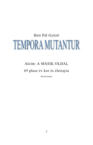 Biró Pál Győző Alcím: A MÁSIK OLDAL 69 plusz év kor és életrajza Bővített kiadás 2
