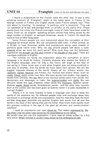 UNIT 14 Franglais Listen to the text and discuss the topic. T or F