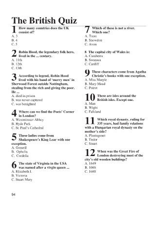 The British Quiz UNIT 15 INVESTIGATION (Reading comprehension)
