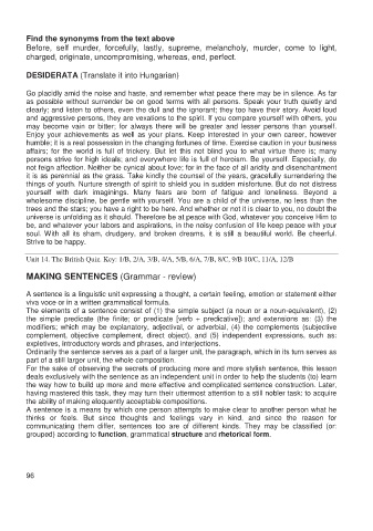 Unit 14. The British Quiz. Key: 1/B, 2/A, 3/B, 4/A, 5/B, 6/A, 7/B, 8/C, 9/B 10/C, 11/A, 12/B Here is a simple (not extended) sentence having merely a subject and a predicate in the English